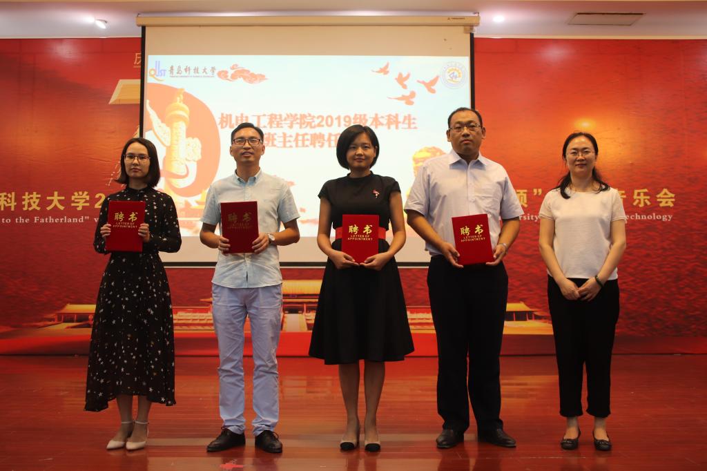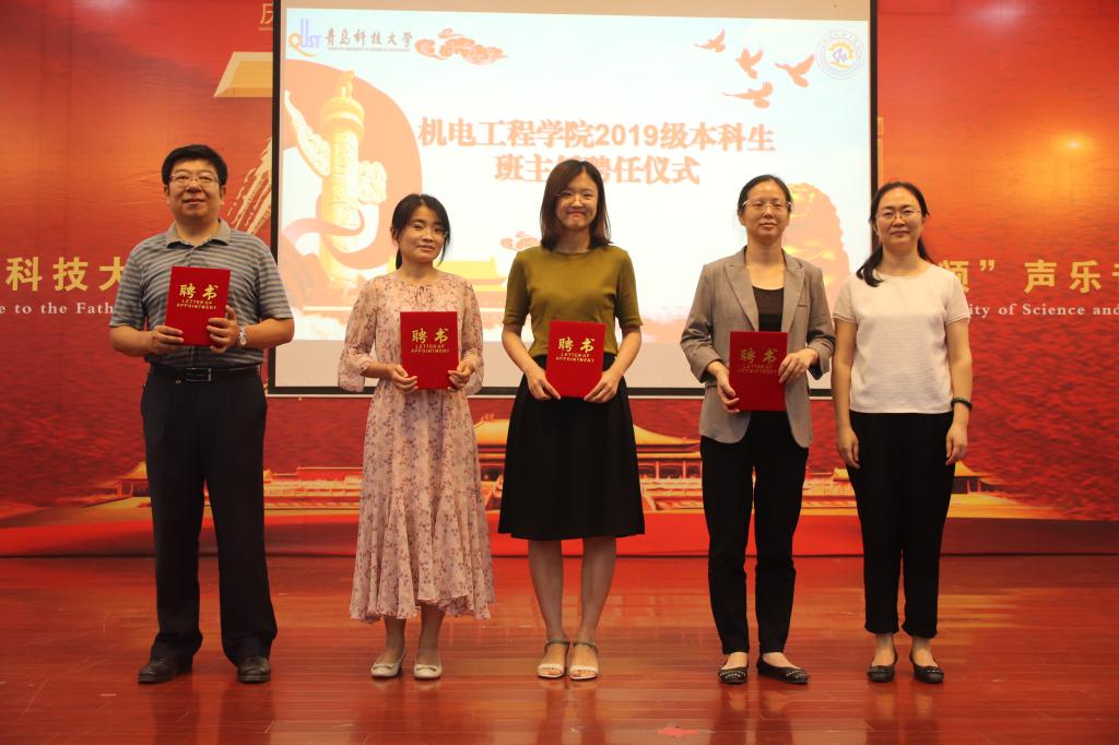 张卫峰上台宣读了《关于聘任青岛科技大学pp电子官方网站2019级本科生班主任的决定》。何燕为班主任代表颁发聘书。