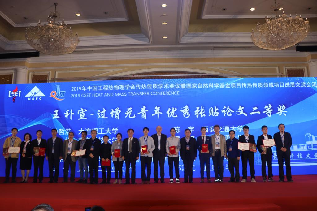 闭幕式上,与会领导和专家为“王补宣-过增元青年优秀论文”获奖者颁发荣誉证书和奖金,并与其合影留念。并进行了传热杯的交接。
