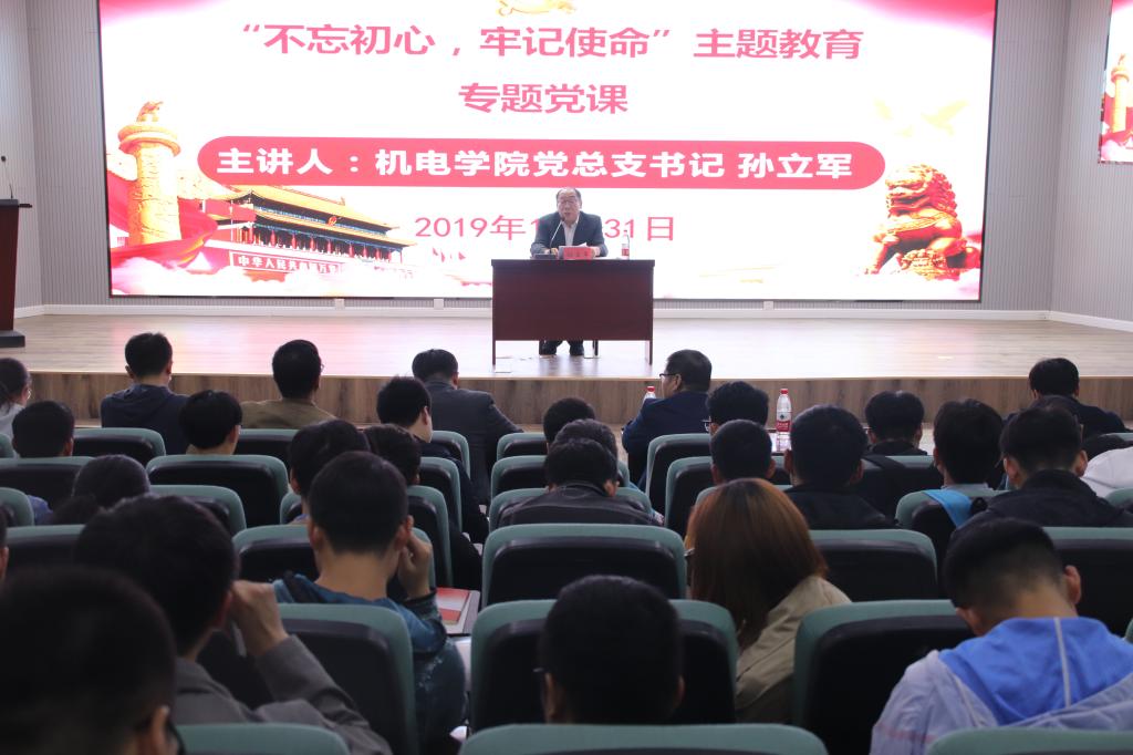 为深入推进“不忘初心、牢记使命”主题教育工作,不断解放思想、把握办学规律、激发奋进动力,10月31日晚,pp电子党总支书记孙立军为pp电子全体学生党员上了题为《践行党的宗旨,做党和人民满意的好党员、好干部》的“不忘初心、牢记使命”主题教育专题党课。校纪委史勤芳出席了党课,pp电子党总支副书记兼副院长王伟及全体专兼职辅导员、全体学生党员参加了党课学习,党课由学院分团委书记王作辉主持。