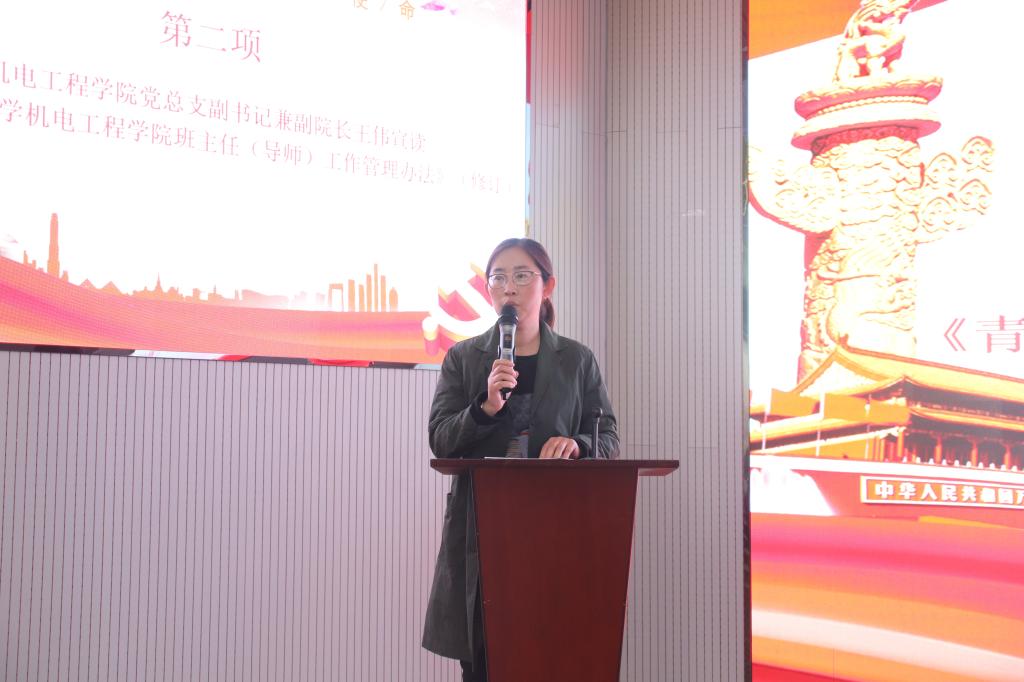 活动中,王伟宣读了《青岛科技大学pp电子官方网站班主任(导师)工作管理办法》并做了解读。