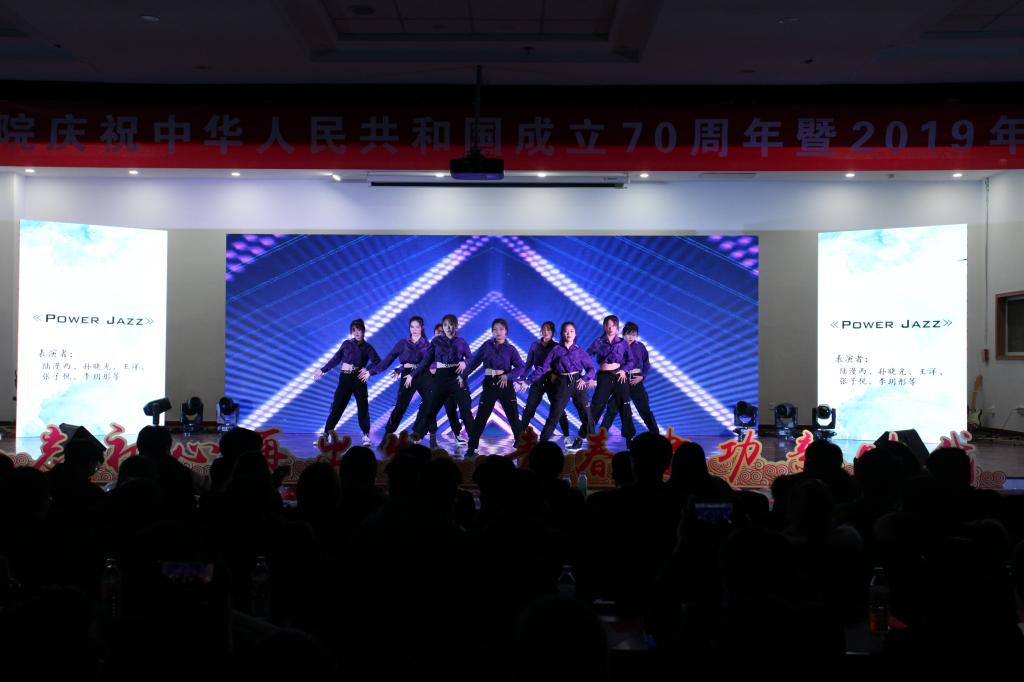 院学生会主席团《我最闪亮》和辅导员节目《相亲相爱》前后呼应,展温暖,现温情。同学们看到了平时共同工作学习的学生会学长们和平常严肃认真的导员们可爱活泼的一面。两个节目间以武艺类表演节目《中华武魂》,太极与拳击表演刚柔并济,给人以中国古典传统艺术美的享受。女生团舞《contrast》引爆全场,古典舞蹈与现代爵士舞蹈大胆结合带来的强烈视觉冲击与惊艳效果收获掌声欢呼声接连不断。