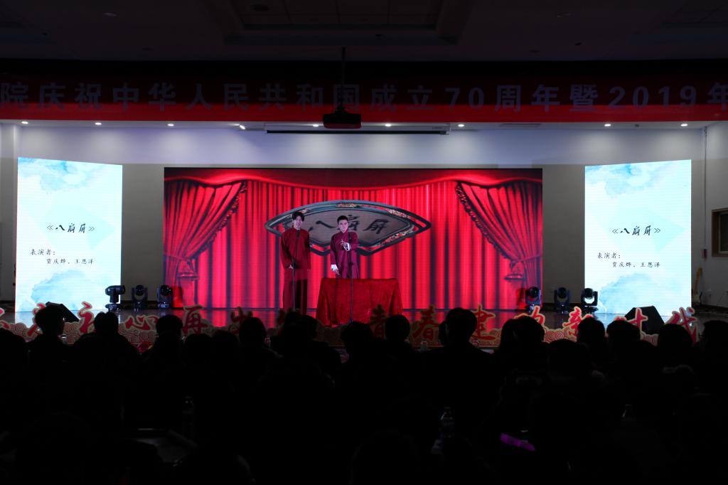 11月27日晚,pp电子在崂山校区第二报告厅举办庆祝中华人民共和国成立70周年暨“不忘初心再出发,青春建功新时代”2019年迎新晚会。pp电子副院长郭建章、学院党总支副书记兼副院长王伟、副院长张卫锋、分团委书记王作辉、所有专兼职分团委老师及2019级班主任到场。
