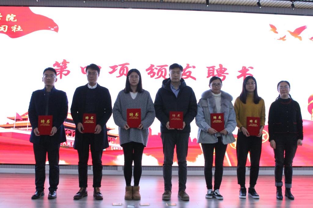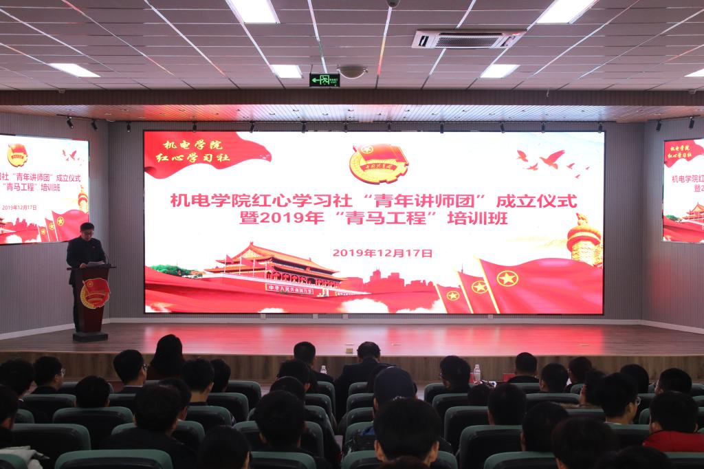 党旗所指,团旗所向。为深入贯彻党的十九届四中全会和共青团十八届三中全会精神,深入持续用习近平新时代中国特色社会主义思想引领凝聚青年,深入推进党的理论武装工作在青年领域的高质量发展。12月17日,在纪念pp电子习近平新时代中国特色社会主义思想“红旗学习社”、“红心学习社”成立两周年之际,pp电子举行pp电子“青年讲师团”成立仪式暨2019年“青马工程”培训班。学院党总支书记孙立军、院长何燕、校党委宣传部副部长王建民、校学生处副处长贺炜、校团委副书记张玉、学院党总支副书记兼副院长王伟等参加了仪式。活动由学院分团委书记兼学工办主任王作辉主持。
