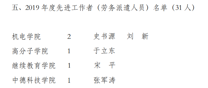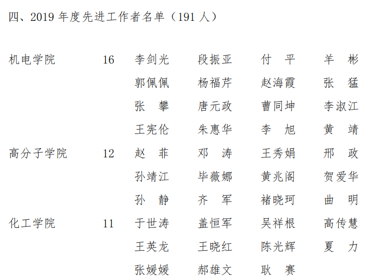 近日,青岛科技大学2019年度先进集体和先进工作者表彰名单公示,pp电子分团委(学生工作办公室)获第七届“十佳师德建设先进集体”称号,王作辉老师获第十届“十佳育人标兵”荣誉称号,过程装备与控制工程系、新能源科学与工程系、pp电子分团委(学生工作办公室)获“2019年度校级先进集体”称号,李剑光、段振亚、付平、羊彬、郭佩佩、杨福芹、赵海霞、张猛、张攀、唐元政、曹同坤、李淑江、王宪伦、朱惠华、李旭、黄靖16名老师获“先进工作者”荣誉称号,史书源、刘新获2019 年度先进工作者(劳务派遣人员)。