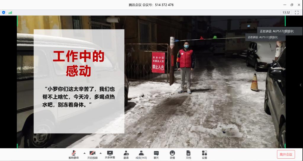 罗浩宇从一名学生党员和学生骨干的角度讲述了自己参与疫情志愿工作的所感所想。疫情暴发正值新年期间使得防疫工作更加紧张复杂,而他在社区居民的积极配合和温暖关怀下勇往直前,利用奖学金为工作人员和环卫工人送去温暖;作为pp电子学生会主席,发挥模范带头作用,举办“共抗疫情,爱国力行”系列活动及“四个一”系列活动,引导同学们学习习近平总书记的重要指示精神,鼓励大家勇于承担青年人的社会责任。