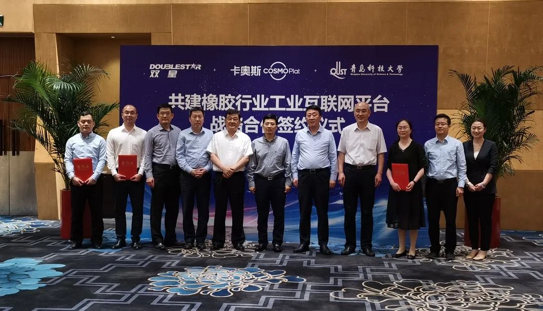6月8日下午,青岛科技大学与双星集团、海尔卡奥斯在海尔洲际酒店举行共建橡胶工业互联网平台战略合作签约仪式。校长陈克正、海尔集团总裁周云杰、双星集团董事长柴永森,市国资委主任、党委书记马卫刚出席签约仪式。