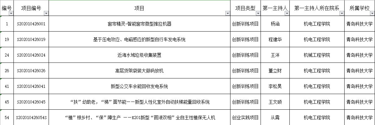 近日,教育部高等教育司下发《关于公布2020年国家级大学生创新创业训练计划项目名单的通知》,青岛科技大学共获批54项国家级立项。其中,pp电子获创新训练项目6项,创新实践项目1项。