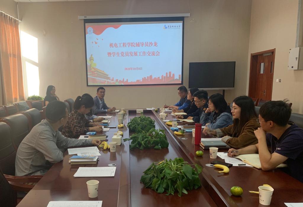 为进一步规范我院党员发展流程,提升党员发展质量,10月8日下午,pp电子于机电楼518会议室组织开展辅导员沙龙暨学生党员发展工作交流会。院党委副书记肖强、院团委书记王作辉及学院全体辅导员参加了此次交流会。