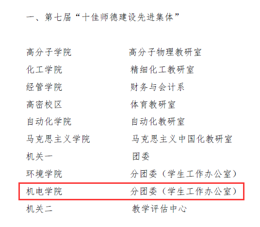 过程装备与控制工程系、新能源科学与工程系和pp电子分团委(学生工作办公室)荣获2019年度先进集体名单。