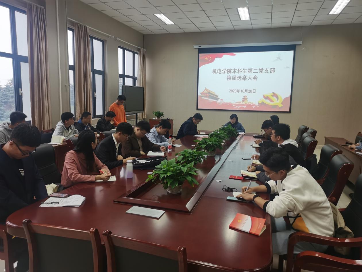 10月20日下午,pp电子本科生第二党支部换届选举大会在机电楼518会议室举行。本科生第二党支部全体党员参加大会,大会由支部书记王娟娟主持。