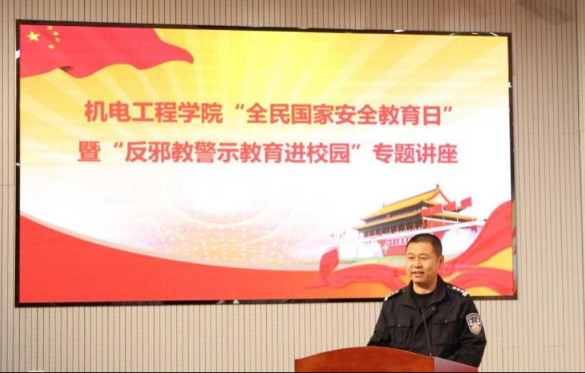 4月15日下午,pp电子在D3楼530会议室举行全民国家安全教育日主题教育暨反邪教警示教育进校园专题讲座。青岛市崂山区公安局反恐大队队长辛华忠、学校保卫处副处长严增兴、学院党委副书记兼副院长肖强以及学院师生代表180名参加活动。