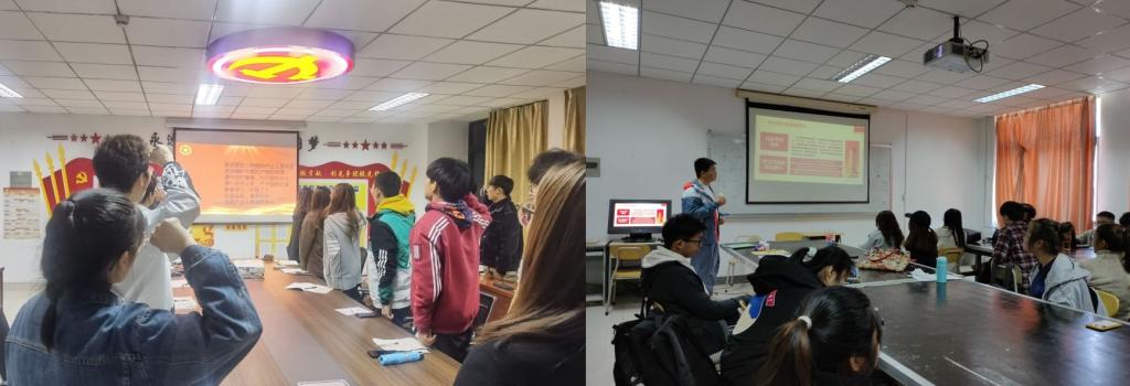 强基固本思先潮。学院各团支部开展“续五四精神,扬爱国情怀”“青年说|我来讲团课”主题团日活动,做好“五个一”,即佩戴一次团徽、重温一次入团誓词、分享一次入团难忘经历、举行一场生动团课和研读一本好书。
