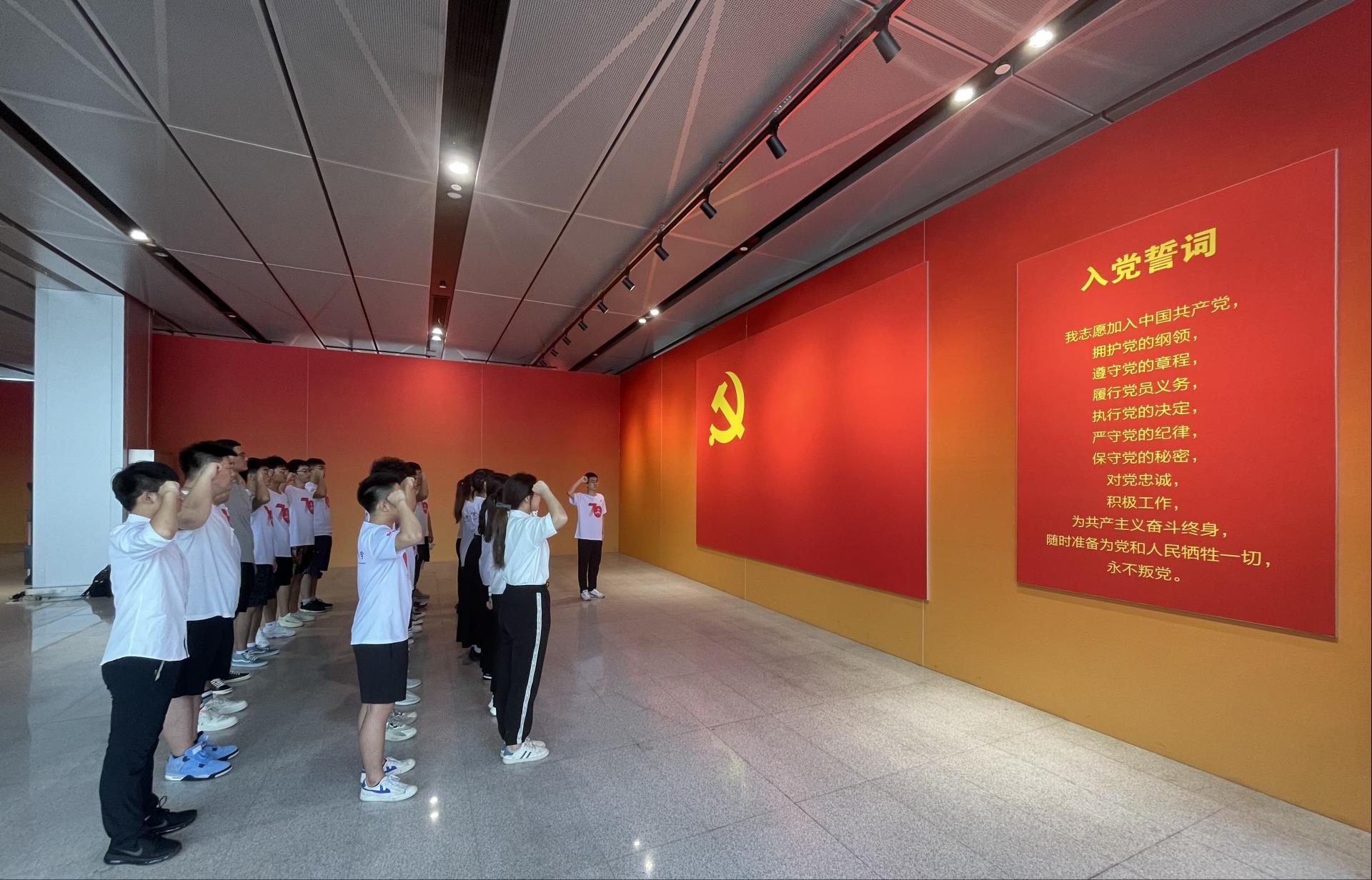 在解说员的引导下,师生党员深入了解了青岛党史波澜壮阔的发展历程,深刻感悟了党百年奋斗历程中青岛承担的历史责任与担当,深切体会到青岛在党领导下取得的翻天覆地的变化。“我志愿加入中国共产党,拥护党的纲领,遵守党的章程……”在学生党员的带领下,全体党员面对鲜艳的党旗重温入党誓词,重温入党时的郑重承诺和时代使命。
