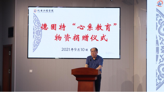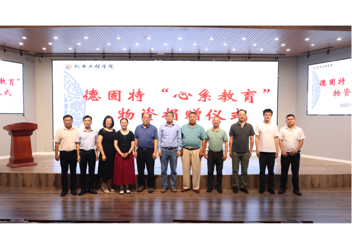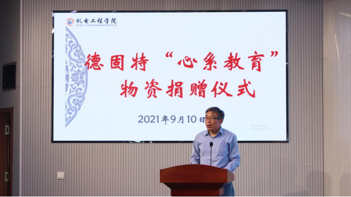 9月10日,适逢第37个教师节,pp电子举办德固特“心系教育”物资捐赠仪式。青岛德固特节能装备股份有限公司董事长魏振文、副总经理崔建波、研发部部长金延超、综合部部长李红娟、学校原党委副书记张元利、pp电子官方网站党委书记孙立军、院长何燕及教师代表参加活动。