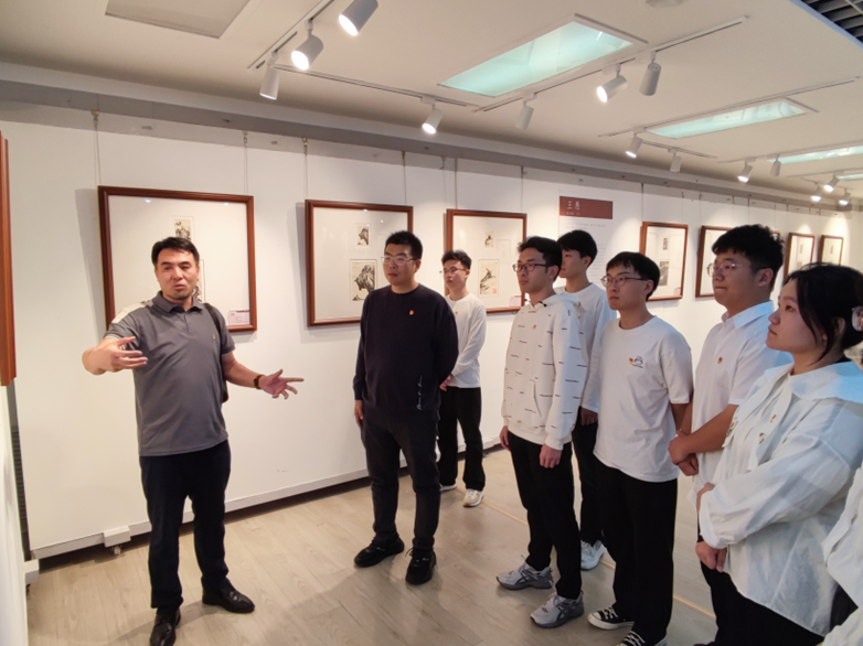 在参观过程中,党员学生在连环画前驻足停留,感受画中展现出的中国人民不畏强暴、血战到底的英雄气概,对革命先烈的敬仰和缅怀之情油然而生。pp电子官方网站本科生第一党支部组织委员杜康老师通过讲述连环画中的抗战内容,以及连环画作为侵华战争的历史性证据重要作用,要求每位党员学生要铭记历史,铭记革命先辈不屈的抗争,同时作为新时代青年,要讲好中国故事,发出新时代青年的声音,将伟大的抗战精神传承好,同时应用到学习和实践中去。