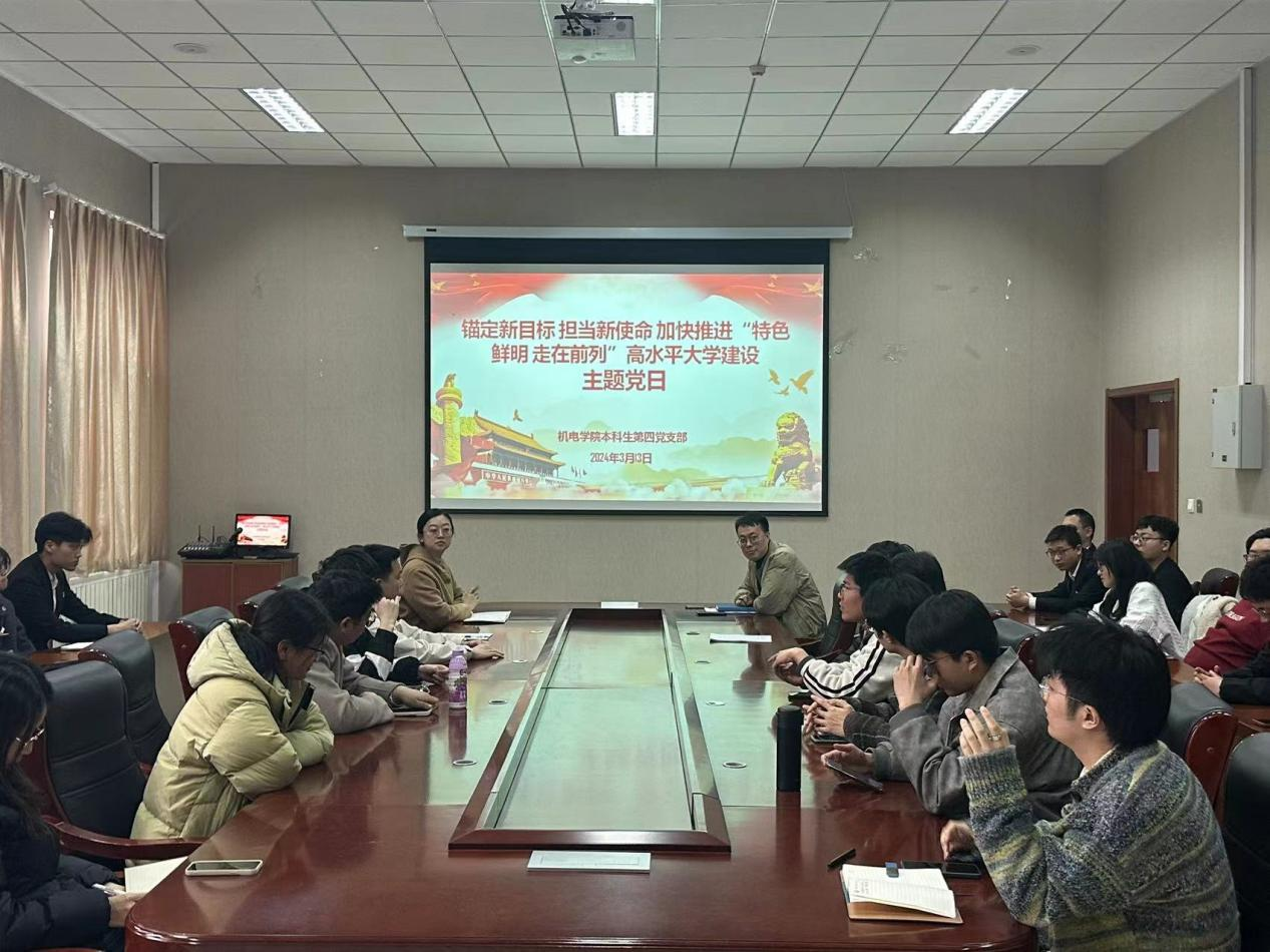 3月13日,pp电子官方网站本科生第四党支部召开“锚定新目标,担当新使命,加快推进‘特色鲜明、走在前列’高水平大学建设”主题党日活动。