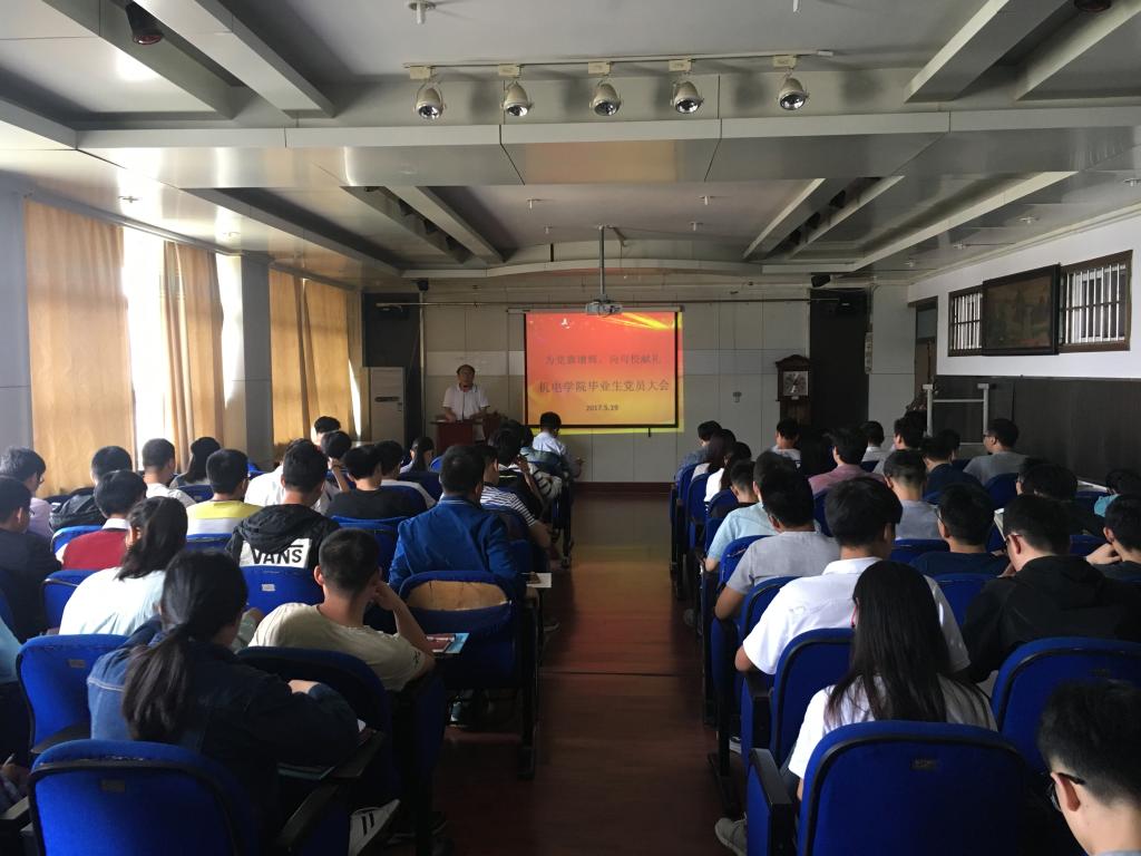 5月19日上午,pp电子在pp电子五楼大会议室召开“为党旗增辉,向母校献礼”毕业生党员大会。pp电子党总支书记孙立军、pp电子党总支副书记兼副院长王伟、分团委辅导员和全体毕业生党员出席本次大会。