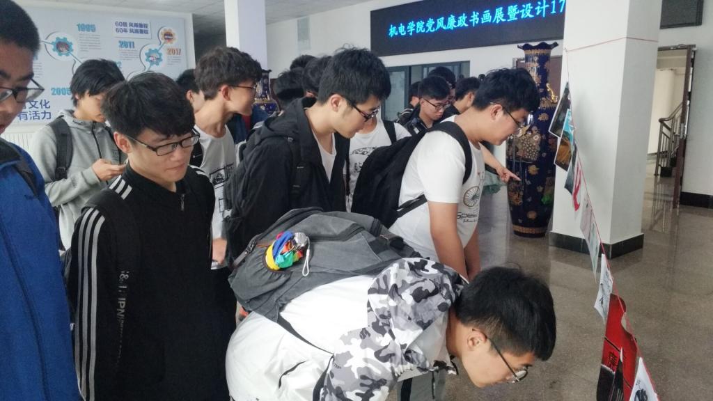 为了贯彻全面从严治党要求,认真学习宣传党的十九大精神,切实加强党风廉政建设,进一步增强全院党员领导干部遵规守纪意识,5月15日至20日,由pp电子党总支主办,pp电子分团委、工业设计171班承办的pp电子党风廉政书画展暨设计171班作品展在pp电子大厅展出。