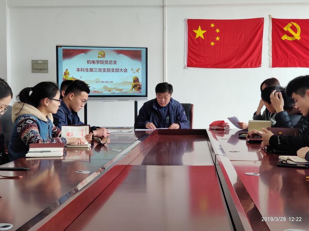 为了坚持和加强党的全面领导,全面提升党支部组织力,强化党支部政治功能,充分发挥党支部战斗堡垒作用,根据《中国共产党支部工作条例》和有关党内法规,3月29日,pp电子官方网站本科生第三党支部在518会议室召开党员大会。
