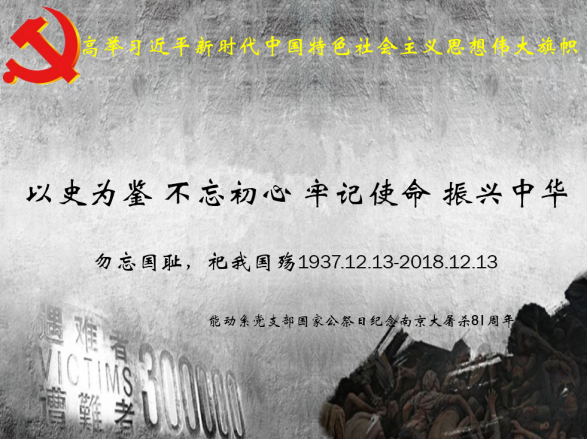 12月13日,能动系党支部在pp电子518会议室召开支部全体党员大会,开展“以史为鉴,不忘初心,牢记使命,振兴中华”主题党日活动,缅怀南京大屠杀的无辜死难者,缅怀所有惨遭日本侵略者杀戮的死难同胞,缅怀为中国人民抗日战争胜利献出生命的革命先烈和民族英雄。