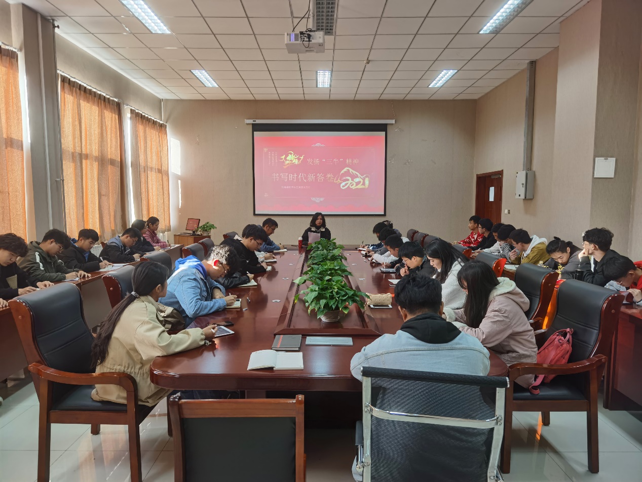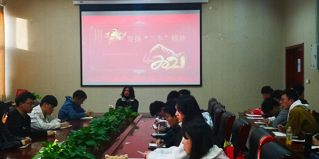 3月23日,结合习近平总书记日前在全国政协新年茶话会上的讲话精神,pp电子本科生第四党支部召开“发扬”三牛”精神,凝心聚力干事,全面开创学校高质量发展新局面”主题党日活动。会议由党支部书记孙坤岩主持。