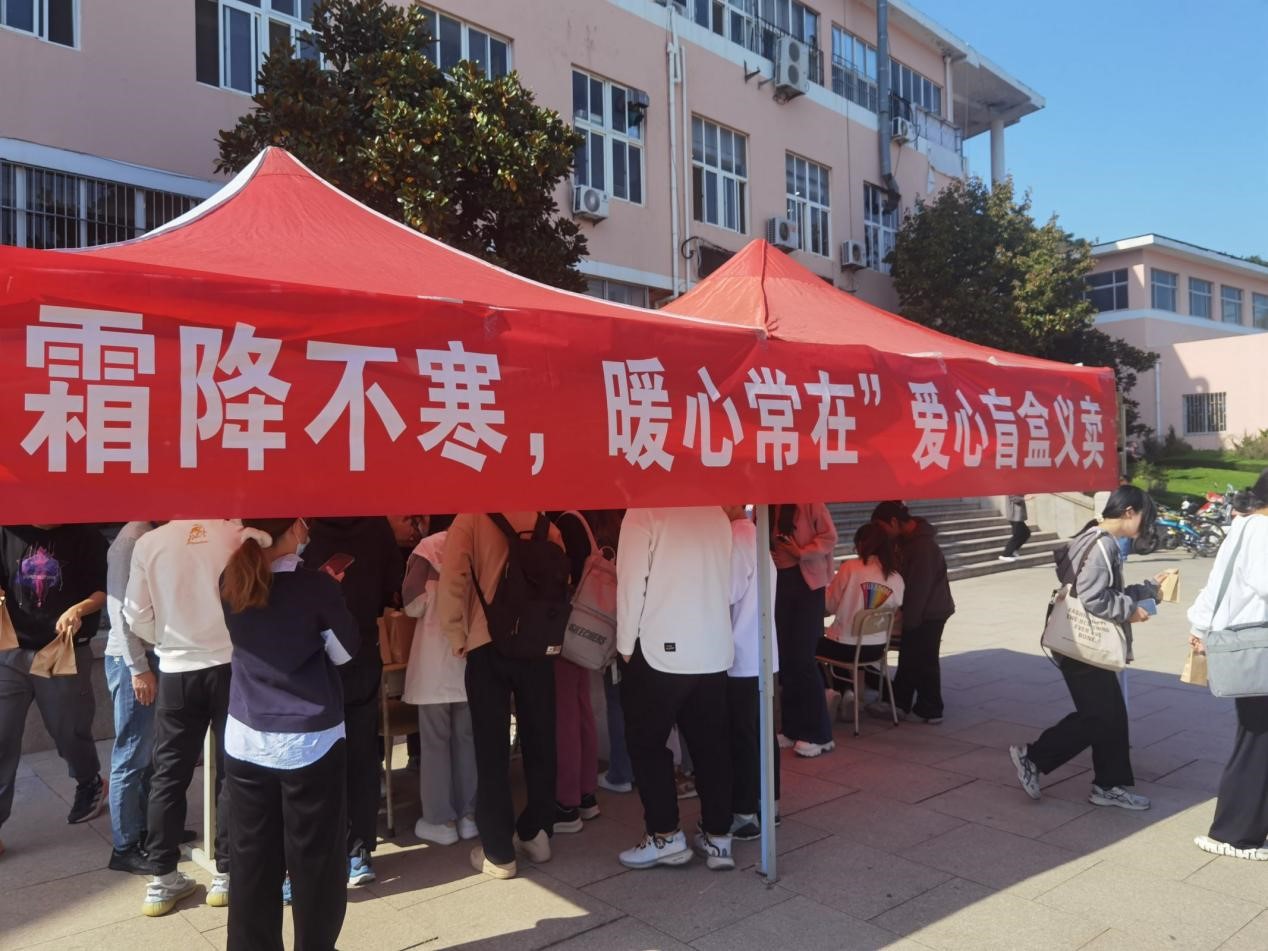 为了更好的帮助晓艺自闭症服务中心,为自闭症儿童募集善款,10月23日,青岛科技大学pp电子官方网站团委志工部红心青年志愿者协会于南苑餐厅门口举办以"霜降不寒,暖心常在"为主题的爱心盲盒义卖活动。