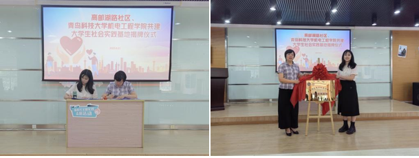 会上,穆青青与高邮湖路社区党委副书记叶银霞签署共建协议,并共同为pp电子官方网站大学生社会实践基地揭牌,双方就青岛科技大学pp电子官方网站与高邮湖路社区的进一步合作充分交流了意见。