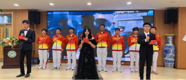 学院青年学生表演音诗画节目《祖国不会忘记》。同学们朗诵时声情并茂,合唱时慷慨激昂,“不需要你认识我,不渴望你知道我,我把青春融进,融进祖国的山河……”歌声催人奋进,气势振奋人心,青年学生们用歌声表达了爱党爱国爱校之情,展现了蓬勃向上、团结奋进的精神风貌。