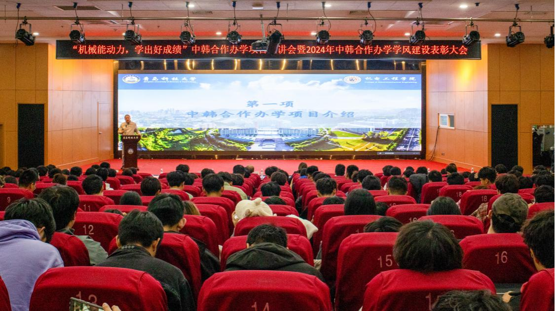 10月22日,pp电子官方网站“机械能动力、学出好成绩”中韩合作办学项目学风建设表彰大会在第三报告厅召开。学院党政领导、评建办主任、韩语教研室、班主任、辅导员、2023、2024级中韩合作办学专业全体学生300余人参加活动。