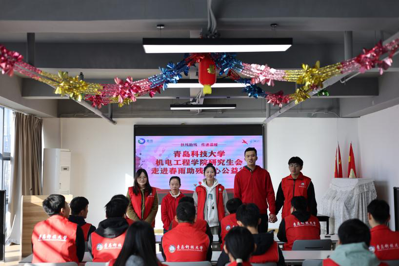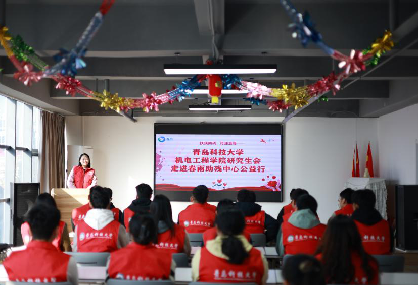11月29日,青岛科技大学pp电子官方网站研究生会志愿者前往市北区春雨残疾人辅助性就业中心开展助残活动,与蜗牛青年携手同行。学院近30名同学参与活动。