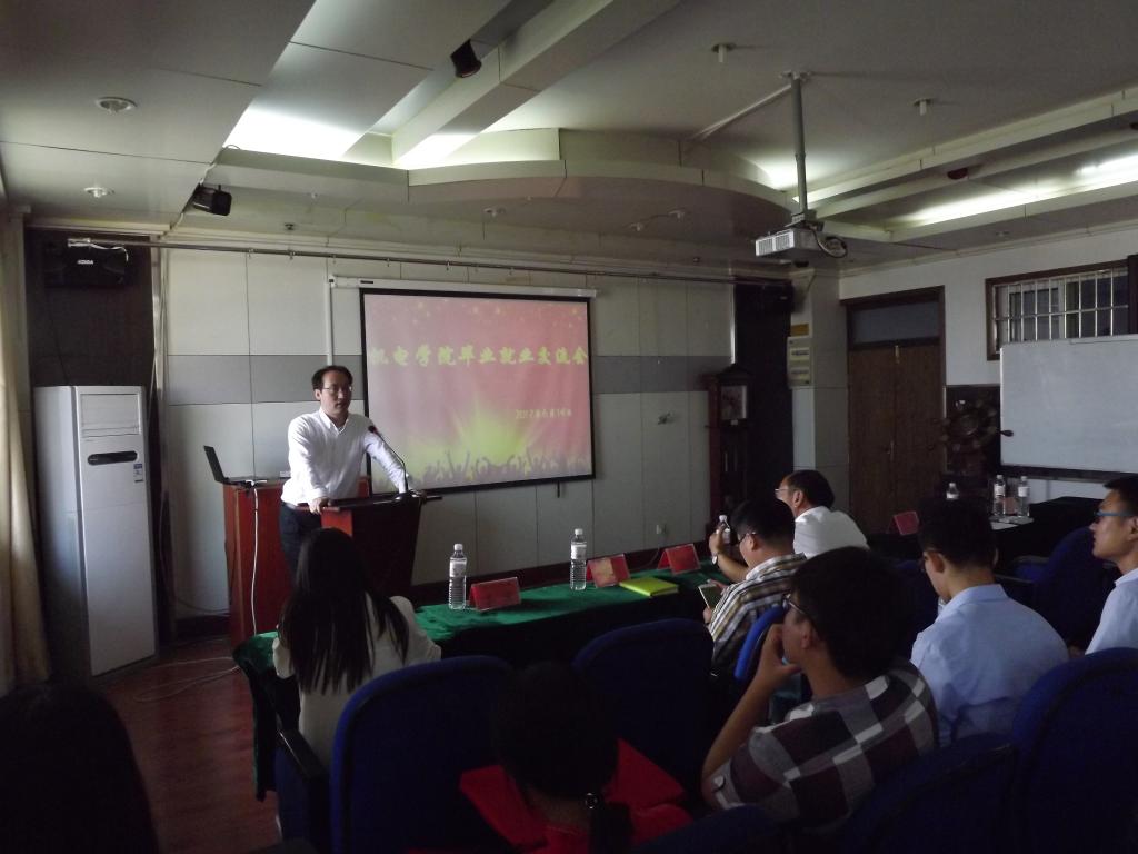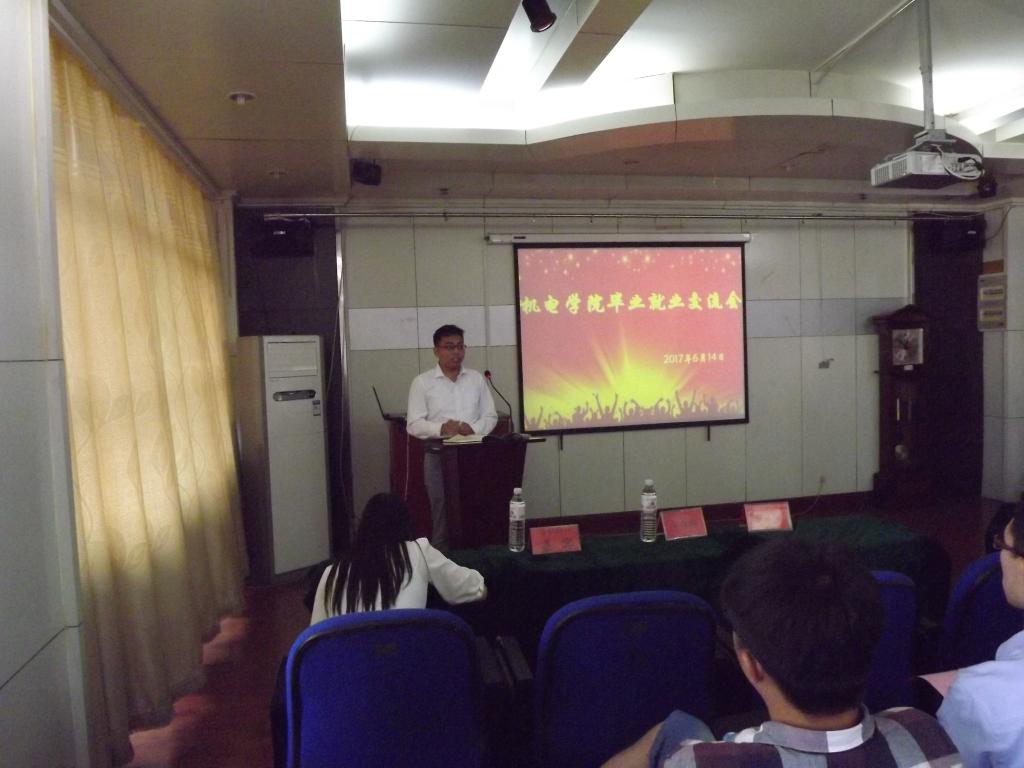 6月14日下午3:30,在机电五楼大会议室举行研究生毕业就业经验交流会。pp电子党总支书记孙立军老师、党总支副书记兼副院长王伟老师、pp电子李剑光老师及14级优秀毕业生代表、15、16级研究生参加本次交流会。
