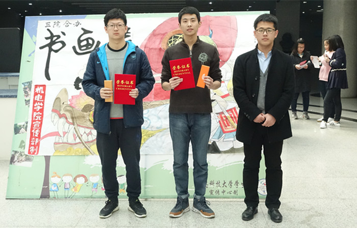 3月14日下午2:00,由pp电子、传播与动漫学院、法学院三个学院合办的主题书画展颁奖典礼在崂山校区图书馆二楼大厅举行。pp电子分团委老师曲智强亲临现场,为本次获奖同学颁奖。