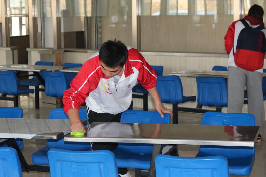 根据本次活动方案及分团委老师们的严密部署,全体志愿者分为两组进行义务清扫。一组负责擦洗桌椅,另一组负责清扫地面,尽管打扫过程很辛苦,但是同学们却热情饱满,做得十分用心,他们秉承着“学习雷锋,弘扬雷锋精神”的理念,不怕脏,不怕累,认真地清扫餐厅三楼的每个角落。通过近一个小时的艰辛劳动,北苑餐厅三楼的环境被干事们清理得干干净净。虽然辛苦,但志愿者们脸上的笑容却依然灿烂,透露出一种幸福的信息,尽管天气还有点寒冷,但是同学们的心里都暖洋洋的。新时代的雷锋精神在pp电子学生会每个成员身上体现了出来。雷锋精神已深深融入到中华儿女建设祖国、奉献社会的热血中,更体现在了当代大学生助人为乐、无私奉献、全心全意为人民服务的活动中。