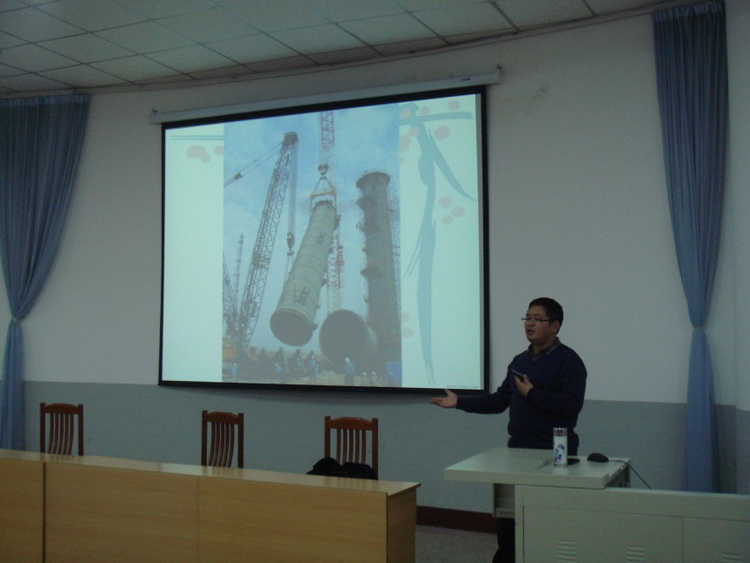 交流会上,张霄书记首先对段振亚老师进行了简单的介绍。随后,段振亚老师做了题为《工程思维与创新能力的培养》的报告,以中石化公司引进的大型起重机为切入点阐述了科技在生产生活中的重要性。当讲到“工程”时,段老师以自己独特的见解给出了定义—工程是科学与数学的有机结合。当讲到“创新”时,段老师说到,创新是在对原有事物有一定认识的基础上有了新的突破,要想创新必须要有扎实的基础。随后,结合几个实例向大家强调了诚信的重要性,学术问题马虎不得更忌讳弄虚作假。最后,段老师勉励同学们学好专业基础知识,做全面发展的复合型人才。交流互动环节,段老师诙谐幽默、深入浅出的回答,赢得同学们的阵阵掌声。