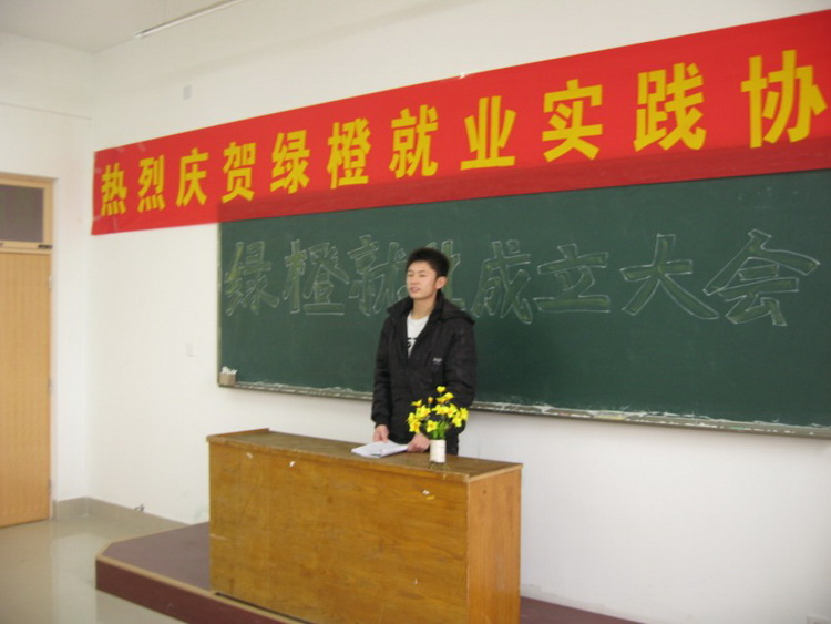 11月29日下午13:30,pp电子绿橙就业协会成立大会在高密校区11号楼207教室举行。pp电子分团委秦洪庆老师,学生会常务副主席李泽汉,学生会副主席王军、房国胜、李钰鹏,学生会各部常务副部长,各社团常务副会长,绿橙协会全体会员参加成立大会。