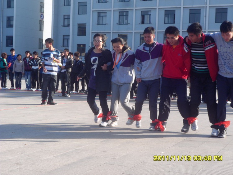 本次趣味运动会比赛项目丰富多彩,有扣!扣!扣!、多人多足、拼尽全力、袋鼠搬家、“瞎子”背“瘸子”等比赛项目,其中既有个人项目又有集体项目,给同学们开辟了充分展示自我的空间。运动会以“健康、和谐、奋进”为主题,同学们表现出朝气蓬勃、奋发向上的精神风貌,激烈的气氛将比赛推向一个个高潮。整个活动洋溢着“合作、分享、快乐、健康”的气氛,场上选手热情参与、默契合作,场下观众呐喊加油、气氛热烈。尽管部分班级同学在有些项目进行中因配合失误导致落后,但灿烂的笑容依然挂在他们脸上,名次在这里已经不再是最重要的,内心的快乐喜悦才是大家所期望共享的。整场趣味运动会持续了两个半小时,真正让每一个参与其中的同学得到身与心的锻炼,感受运动传递的健康理念。最后,经过激烈角逐,共评出12个单项奖,能源111班获得团体一等奖,船舶111班获团体二等奖,机自112班获团体三等奖。秦洪庆老师为获奖的个人和班级颁发奖状和奖品。