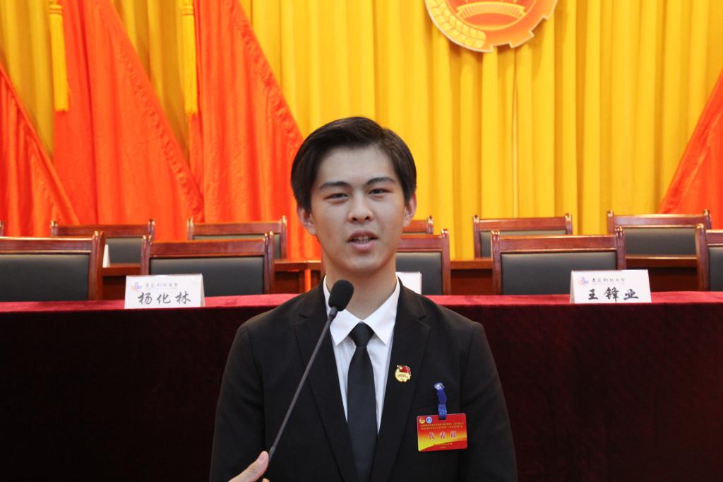 我是pp电子装控162班的张津侨,作为此次双代会的学生代表,我会正确表达广大学生的想法和意见,承担好责任并展现学生代表的良好精神风貌,为联系学生与学院的双代会尽自己最大的努力。最后,预祝大会圆满成功。