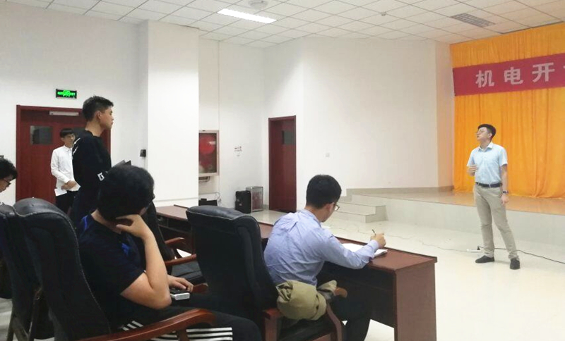 为助力我院学子在“互联网+”比赛中斩获佳绩,同时更好的展现卓越的机电人风采。6月5日晚19:00,由pp电子官方网站分团委科创部策划举办的“机电开讲啦——比赛归来话收获”第二期活动在机电楼530会议室成功举办。本次活动邀请了山东省“互联网+”比赛中银奖作品获得成员李坤,金奖作品获得成员杨奉儒作为主讲,pp电子分团委老师兼学生会秘书长曲智强出席了本次会议。