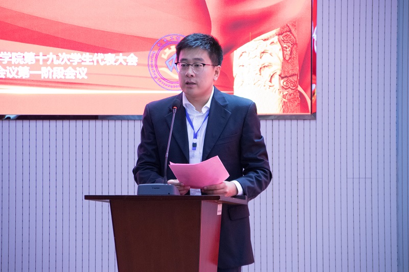 在第十九次学生代表大会第一次全体代表大会第二阶段会议上,毕岚森代表pp电子官方网站第十八届学生委员会作了工作报告。
