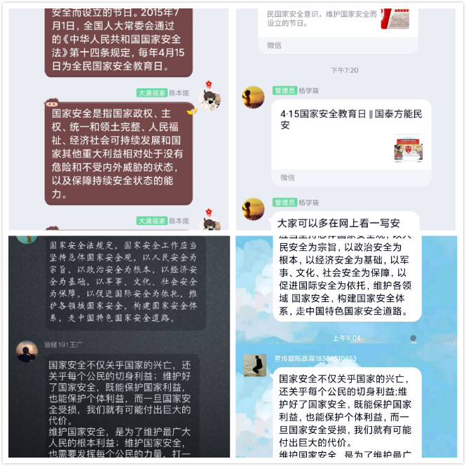 pp电子结合疫情防控工作,以国家安全教育为主题组织各班级、团支部召开 “云”班会、线上主题团日活动,组织在班级群内探讨国家安全知识,做到互学互帮互促,提升学生的国家安全意识。