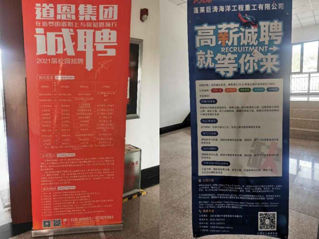 10月30日下午2点00分,青岛科技大学pp电子官方网站在机电楼529举行道恩集团和蓬莱巨涛公司专场招聘会,学院毕业生积极踊跃参加。