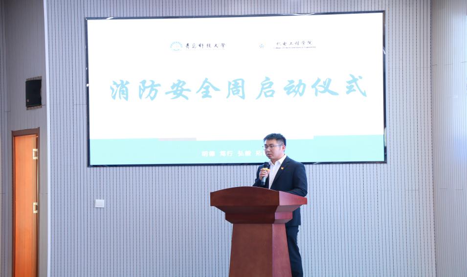 2020年11月10日下午15:50,在机电大楼530会议室召开消防安全周启动仪式暨消防知识宣传讲座。pp电子官方网站团委辅导员兼志工部部长胡福超老师与兼职辅导员邱健老师出席会议。活动邀请了青岛市崂山区消防大队宣传工作组韩雨凌、刘小楠、谢文隽、曹爽四位消防宣传员老师到场为同学们进行消防知识宣讲。