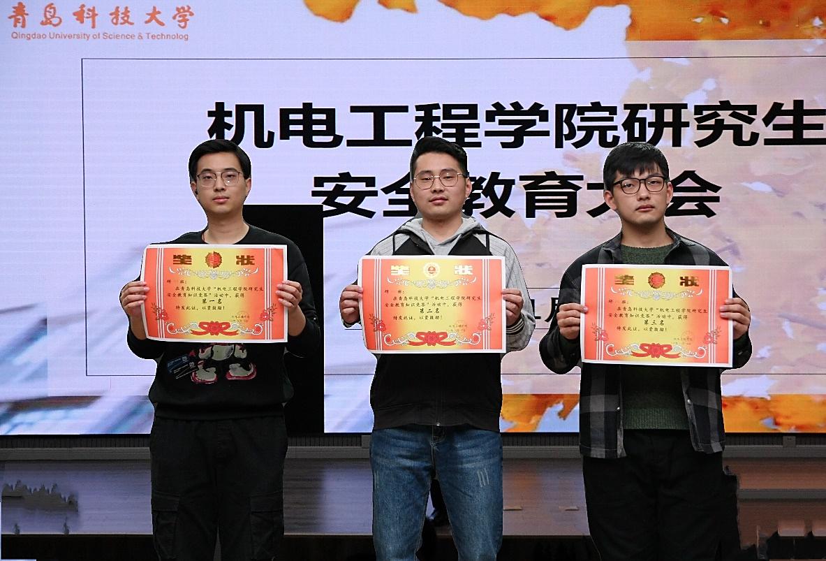 大会分为两个环节,第一环节以PPT和视频宣讲为主。首先,研究生会生活部部长王之林从秋冬季传染病传播途径、预防措施等方面进行了详细讲述;研究生会执行主席陈举胜带领学习了学校下发的《关于2020秋冬季传染病防控倡议书》、《青岛科技大学常态化疫情防控宣传教育明白纸》,号召同学们认真学习传染病预防的相关知识,严格遵守学校常态化疫情防控各项要求,提高抵御风险的能力;研究生会执行主席江峰结合诸多宿舍安全事故案例,进一步强调宿舍安全的重要性,并总结了在宿舍内遇到突发事件的应对措施。大会第二环节为知识竞答,参赛选手们以班级为单位分组进行日常安全、卫生相关知识的抢答。最终193班、202班、206班分获比赛前三名。