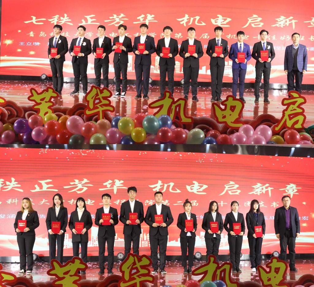 典礼表彰了机电学子在学风建设、科技创新、志愿服务等方面取得的傲人成绩;肖强和王作辉分别为pp电子“十佳好班长”和“十佳团支书”获得者颁奖,并鼓励学生坚定理想信念,不断开拓创新。