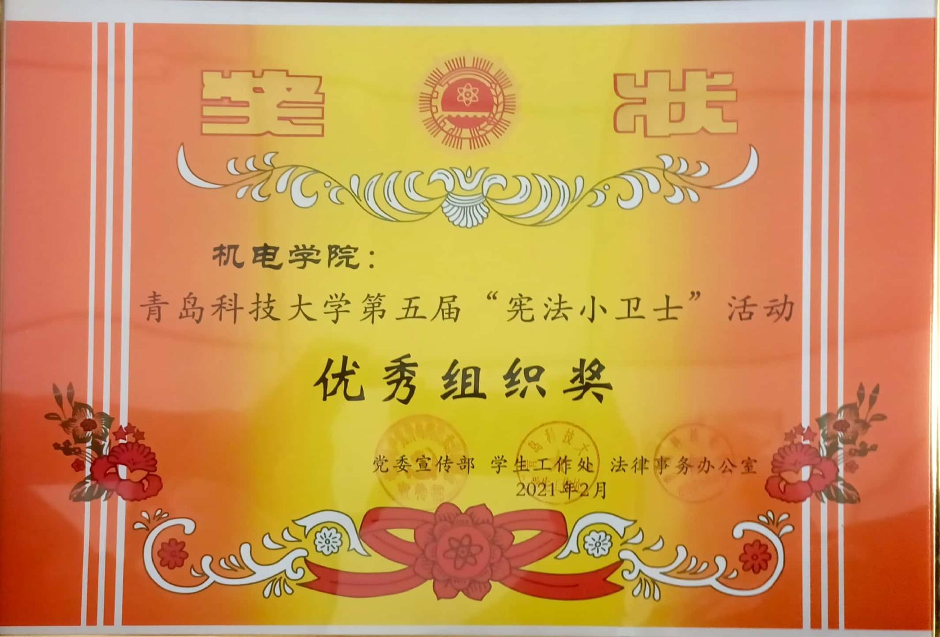 为贯彻党的十九大和十九届二中、三中、四中、五中全会精神,落实全面依法治国方略,引导学生了解宪法知识,理解宪法内涵,pp电子积极组织学院学生参与“宪法小卫士”活动,荣获学校第五届“宪法小卫士”优秀组织奖。