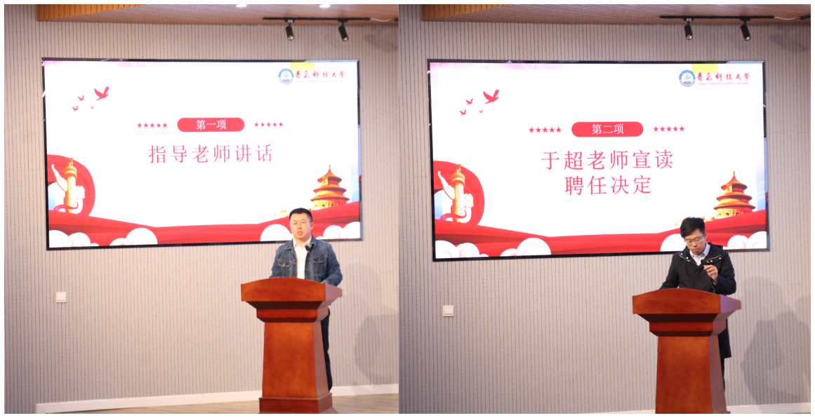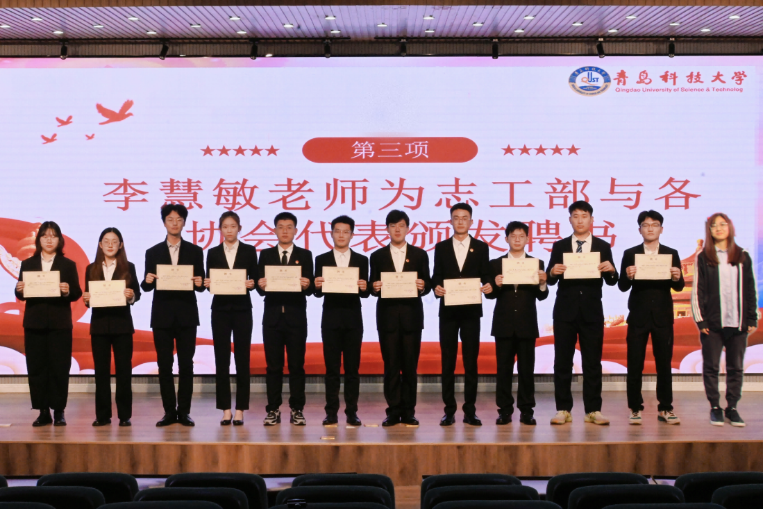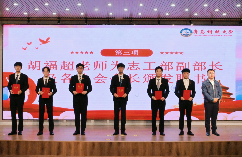 pp电子团委于超老师宣读了《关于聘任青岛科技大学pp电子官方网站团委志工部新一届学生干部的决定》,胡福超老师、李慧敏老师为志工部新一届学生干部颁发了聘书。随后,志工部副部长赵洪豪代表志工部从团队建设、志愿者形象、活动开展三个方面对部门的未来作出了工作展望。