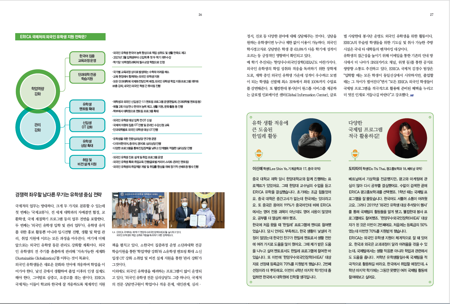 近日,李晨睿同学登上了汉阳大学的校内杂志。让我们一起看看他的留学感悟吧!