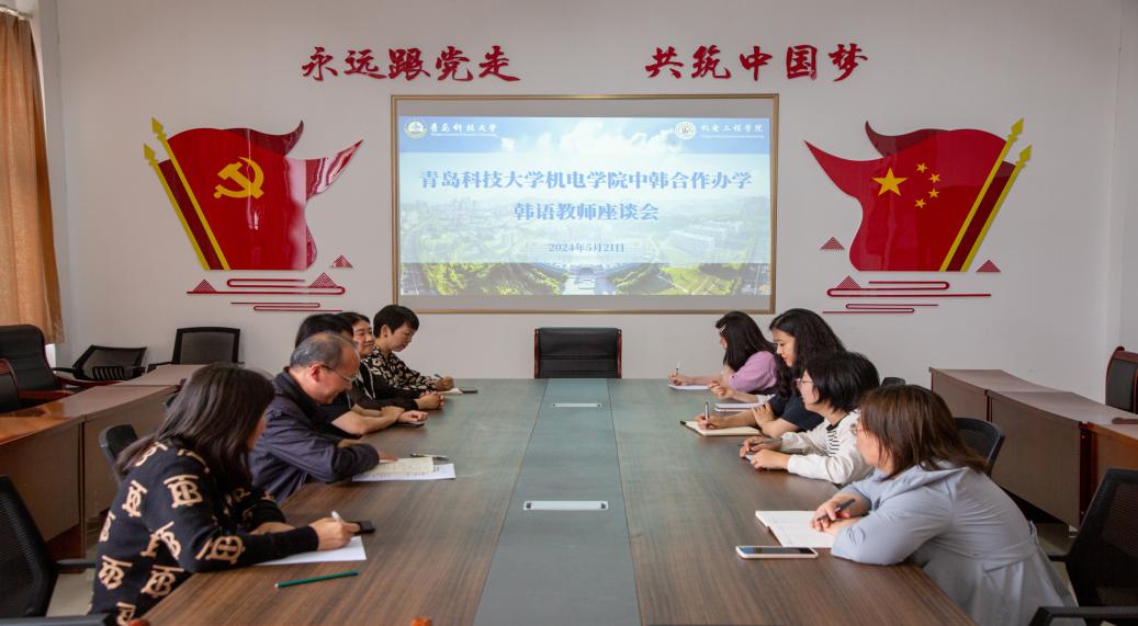 pp电子官方网站于5月21日下午召开中韩合作办学韩语教师座谈会,本次交流会旨在加强韩语教师之间的教学经验分享,提高韩语教学质量。pp电子官方网站副院长杨化林、评建办主任付平及学院中韩合作办学项目韩语教师参与本次会议。