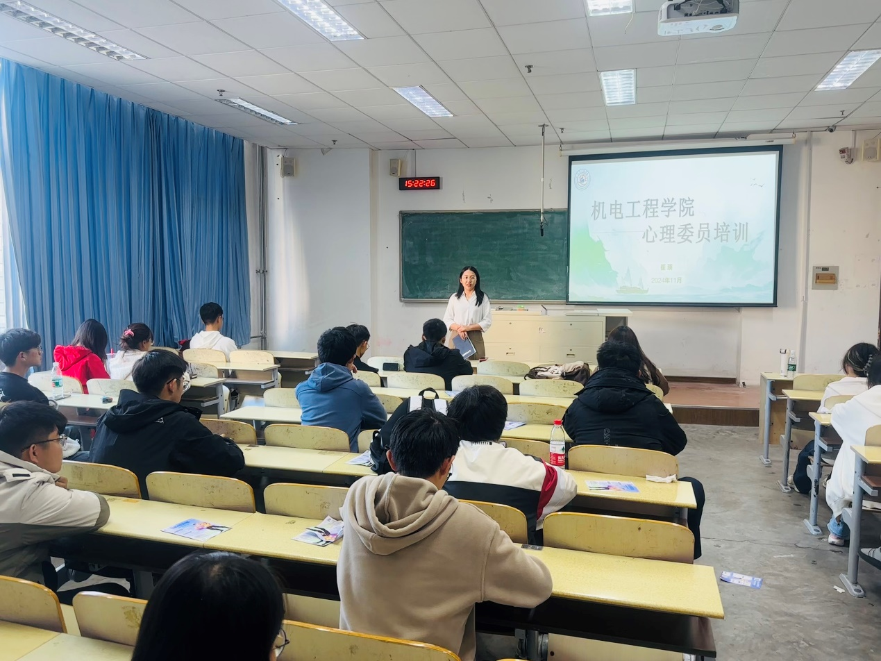 11月18日,pp电子官方网站心理危机干预研讨会在机电楼518会议室举行,学校心理健康教育与咨询中心副主任刘璐老师做心理健康教育与咨询工作的解读和指导,学院全体专职辅导员参加。学院党委副书…