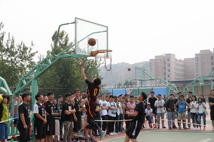 10月11日下午1:30,pp电子“迎新杯”篮球赛在崂山校区南苑篮球场举行,pp电子分团委逄柏鹏老师、曲智强老师及张宝库老师亲临现场为同学们加油助威。